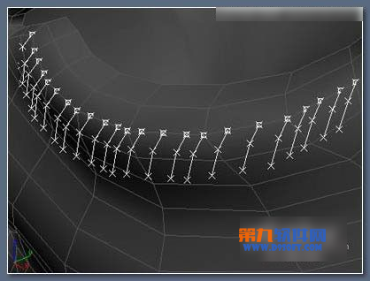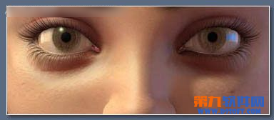 現(xiàn)在簡單的指定一個深褐色的材質(zhì)給眼睫毛,在"opacity"槽放置一幅gradient map(漸變貼圖),最后重復(fù)前面的步驟產(chǎn)生上面的眼睫毛,然后鏡像給另一只眼。
