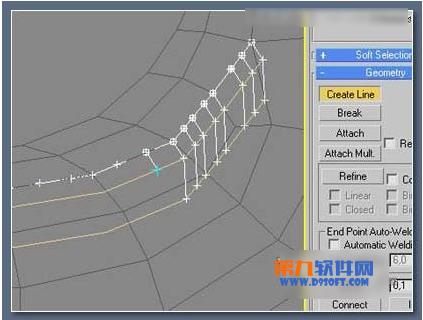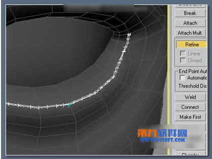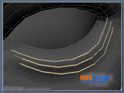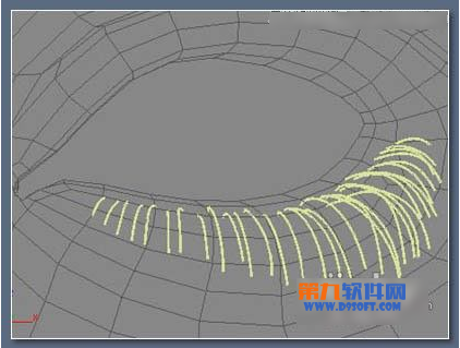 使用"refine"命令添加點,一個重要事項是眼睫毛的中間比外面稠密,因此要添加點,將圖形拷貝2次,并參考圖放置,第一次要低于原始的眼睫毛并向前一點點,第二次向后一點點,并且要低于原始的眼睫毛。