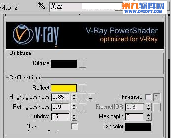 而材質2應設定為黃金材質,材質參數設置如圖所示。