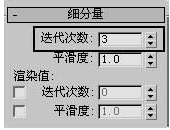 7、在“修改器列表(Modify List)”下拉列表框中選擇“網格平滑(MeshSmooth)”命令,設置參數如圖8所示。