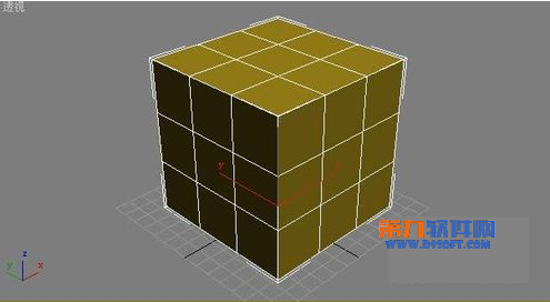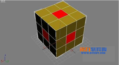 2、右鍵單擊場景中的正方體,在彈出的快捷菜單中選擇“轉換為(Convert To)|轉換為可編輯的網格(Convert to Editable Mesh)”命令,從而將長方體轉換為可編輯的網格物體。進入修改面板“可編輯的網格(Editable Mesh)”中的多邊形級別,然后選中立方體6個面的中間的多邊形,如圖3所示: