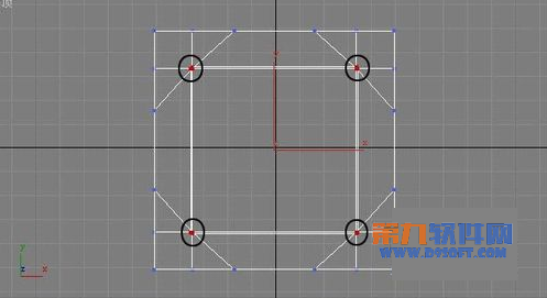 5、按(Delete)鍵刪除選中的6個多邊形。進入“可編輯的網格(Editable Mesh)”物體的頂點級別,在頂(Top)視圖中框選如圖6所示的頂點。