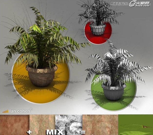下面是我物件的圖片和示意圖。我還使用了很多色彩校正貼圖。色階、飽和度等等。這些貼圖是我長時間積累下來的。在這個網頁上你也可以找到一些http://www.maxplugins.de