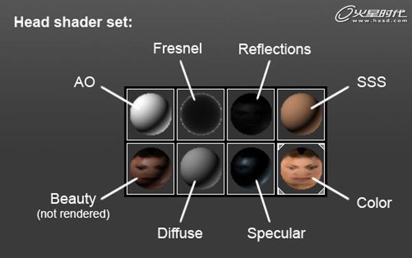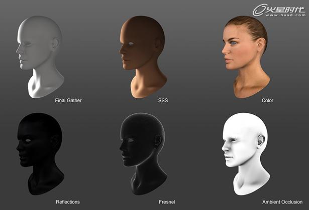 現在說下渲染,我用Mental Ray中的皮膚材質渲染頭和手,衣服用的都是建筑材質。不要期望一次就能調制出來,這里需要花費一些時間來測試不同的材質,直到找到你想得到的。每當我要設置一個新的材質時,我會把所有的參數都設置為0,然后在根據自己的需要調節每一個參數。這樣我才能測試出一切,確定我正在做什么。(圖02)