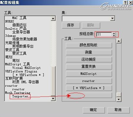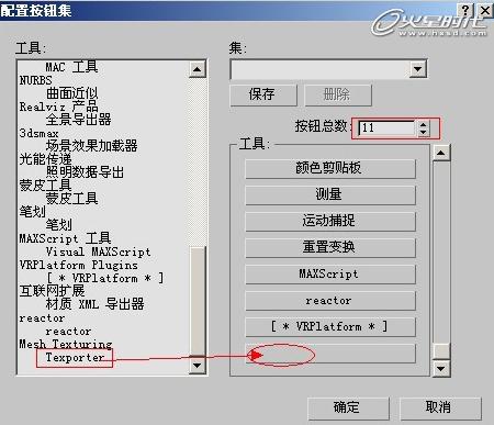 將按鈕數(shù)“10”改為”11”,之后將“Texporter”拖拽到空白工具條中。單擊“確定”完成操作。(圖07)