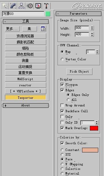 然后選擇模型,點(diǎn)擊“工具”菜單下的“Texporter”鍵,就會出現(xiàn)如下菜單。(圖08)