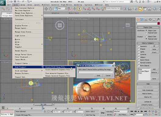 Create Still Image File功能具體操作方法為:1. 首先激活想要捕捉畫面的視圖,在菜單欄執行Tools/Grab Viewport/Create Still Image File命令,打開Grab Active Viewport對話框。