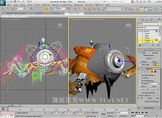 1. 首先運行3ds Max 2011,選擇場景中任意多邊形對象,并進入其子對象層。