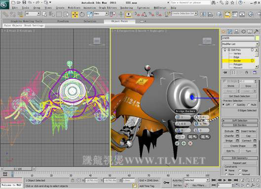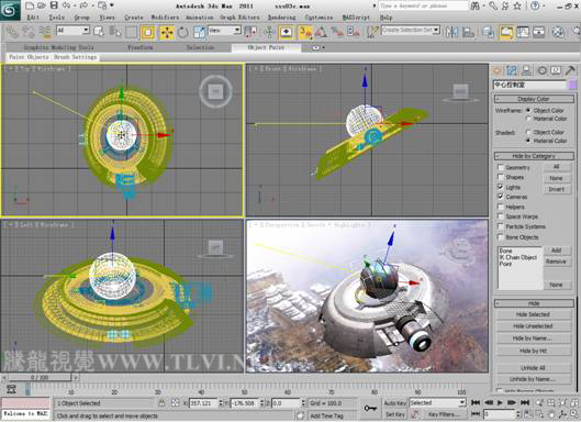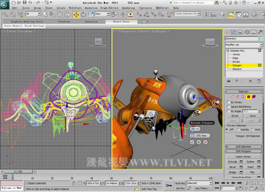 在3ds Max 2011版本中,使用了in-canvas直接式操作界面,界面更為直觀,為半透明狀態(tài),易于觀察和操作,便于對模型進行編輯。