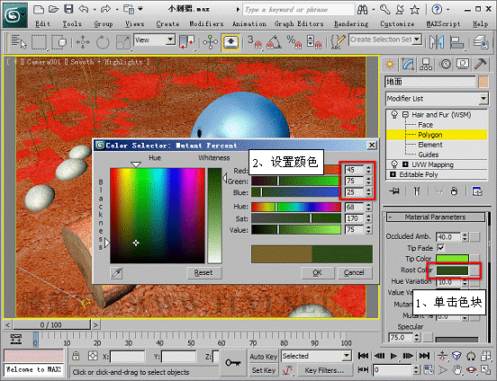 (8)將Root Color顏色顯示窗內的顏色設置為墨綠色。