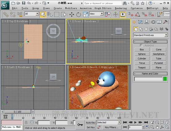 (1)首先運行3ds max 2011,打開素材“小刺猬.max”文件。