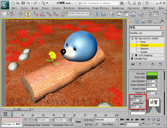 Hair and Fur修改器用于生成毛發,該修改器可應用于要生長頭發的任意對象,快速創建逼真的毛發效果,使用該修改器不僅可以設設置毛發的長度、密度、狀態等參數,還可以設置毛發顏色和光澤度的參數,使毛發效果的創建更為簡單快捷,在本實例中,將指導各位網友創建一個卡通場景,使用Hair and Fur修改器設置草地和刺猬身上的刺,通過本實例,可以使讀者了解Hair and Fur修改器的操作方法,毛發效果非常耗費系統資源,所以各位網友在制作實例時要注意定期保存,并盡量先設置較少的數量,以免造成死機。在制作實例前,需要首先下載素材文件。