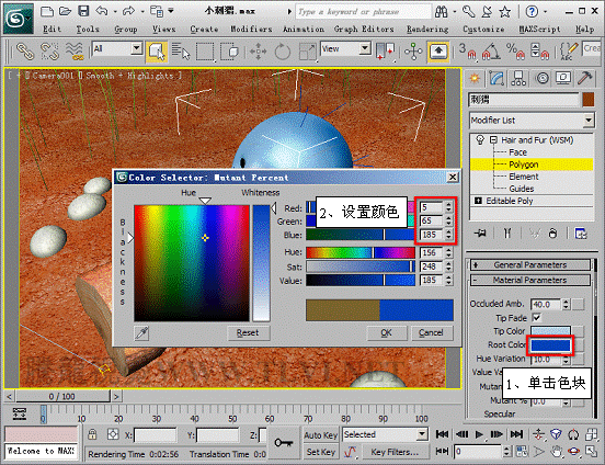 (15)將Root Color顏色顯示窗內的顏色設置為深藍色。