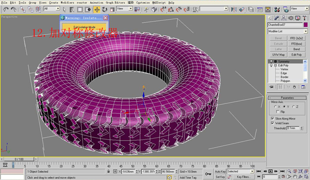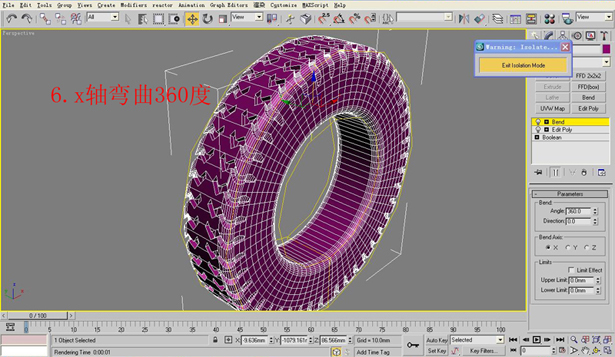 添加一個Bend彎曲修改器,把x軸彎曲度設置為360度。(圖06)