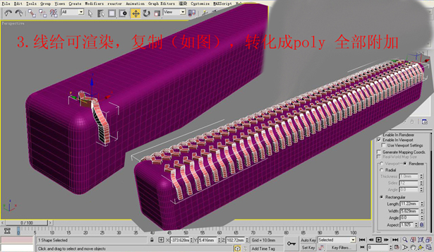 線設置為可渲染,然后按照比例復制出來,再轉化成poly,全部附加。(圖03)
