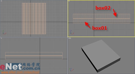2、按住shift,拖動box01,復制一長方體box02,由此box01、box02共同作為一本書模型,box01是打開書的底部部分,box02是打開書的上面部分。如圖2所示。