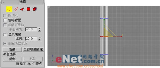 2、點擊“修改”命令面板,在“修改器列表”中選擇“編輯網格”項,打開“選擇”卷展欄,單擊“頂點”按鈕,框選一平面上的頂點,然后單擊工具欄上“選擇并均勻縮放”按鈕,修改其模型,如圖2所示。