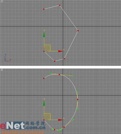 1、啟動3dmax9.0,單擊“創建”命令面板,點擊“圖形”按鈕進入創建圖形命令面板,單擊“線”按鈕,在前面視圖中繪制一線條line01,通過“修改”命令面板,單擊“頂點”按鈕,勾選所有的頂點,單擊右鍵選擇“bezier”項,依次調整線條的形狀,如圖1所示。