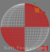 在球體旁邊點一下鼠標左鍵,取消對它的選擇。然后切換到頂視圖(Top),框選上面一半,按鍵盤上的Delete鍵將其刪掉(圖30)。此時會出來一個對話框,點是(Y)按鈕,刪除掉游離的點,再切換的前視圖,框選右上八分之一區域的多邊形面和左下八分之一的多邊形面,記得要完全選到,不要漏掉任何一個小的多邊形面,選擇的時候配合Ctrl鍵和放大按鈕。(圖31)同樣將其刪掉,同樣刪除游離的點。