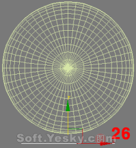 此時在前視圖中我們會看到橢圓形體居中對齊球體(圖25),再切換到頂視圖,將橢圓形移動到球體的下方(圖26)。