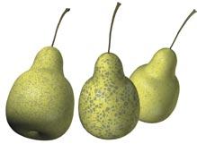 讓我們分析一下梨的表面,看看我們如何為它定制相應的材質,梨的表面有許多小斑點,真實地模擬這些小斑點是關鍵。看來梨擁有比櫻桃更豐富的紋理信息,光是顏色已經無法滿足了。