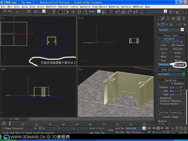 將如圖所示的在頂視圖中任意一個位置拖動。