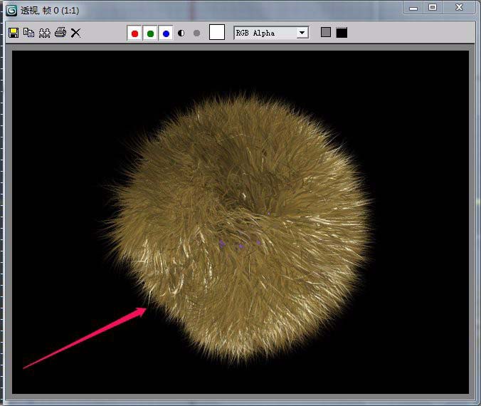 2、渲染后,可以看到,毛發(fā)原來(lái)的顏色呈現(xiàn)棕黃色。