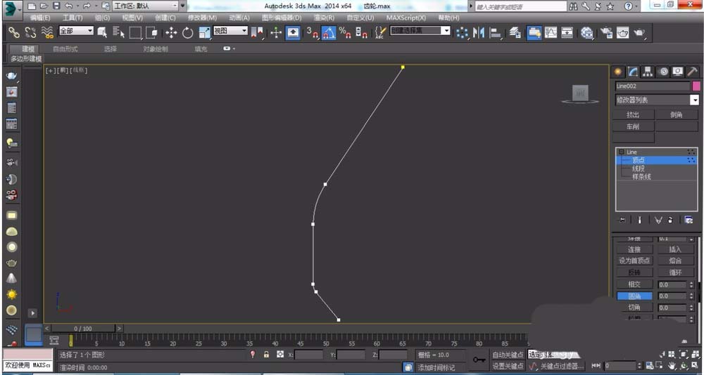 2、然后選擇可編輯樣條線的頂點模式,把轉交點的地方改的比較圓滑一點,這樣用撤銷修改器修改出來的圖形才比較好看。