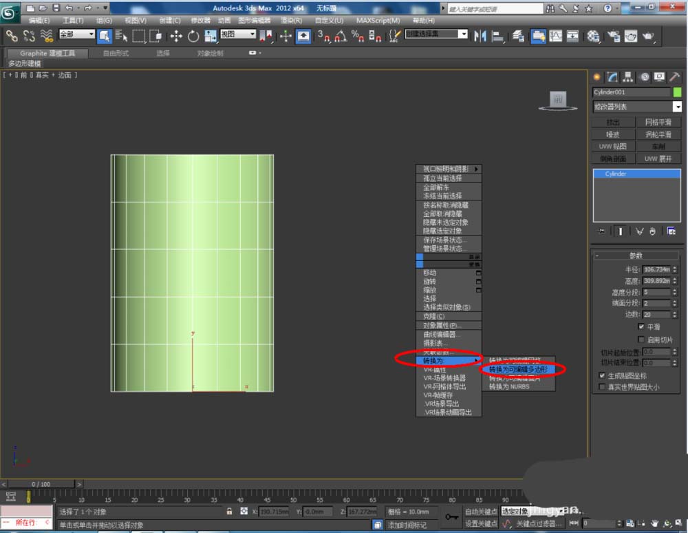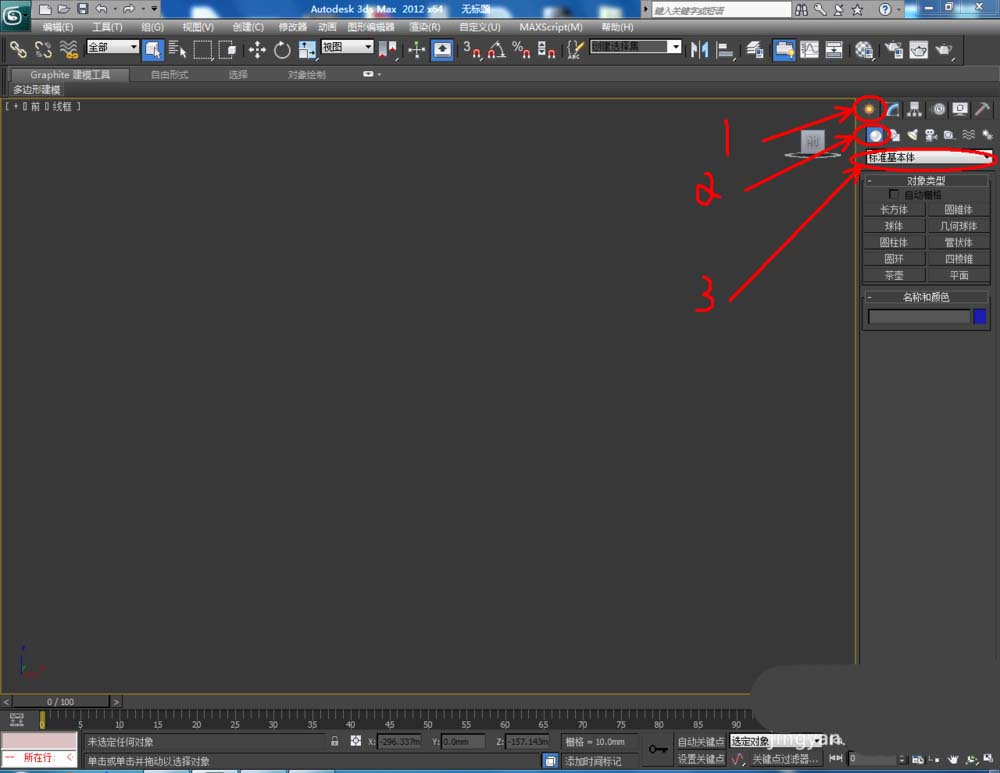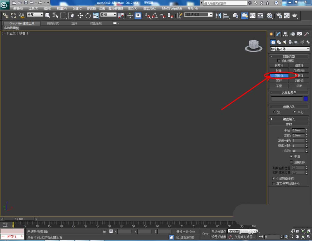 1、打開3Dmax2012軟件,點擊【創建】-【幾何體】-【標注基本體】-【圓柱體】,在作圖區域繪制一個圓柱體模型(如圖所示);