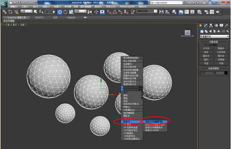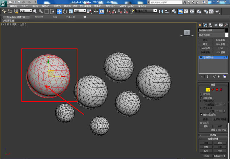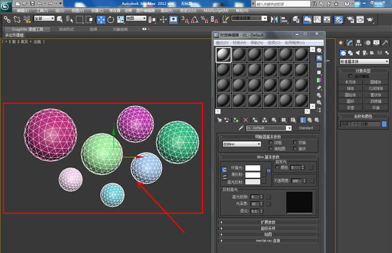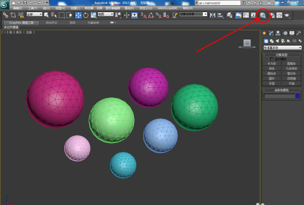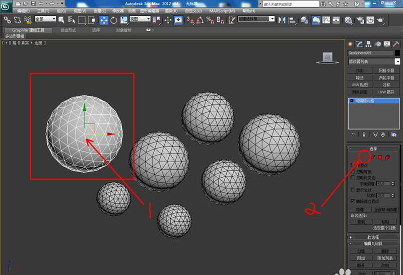 1、打開3Dmax2012軟件,點擊【創建】-【幾何體】-【標準基本體】-【幾何球體】,在作圖區域繪制一個球體模型。同樣的步驟制作出另外六個大小不一的球體模型;