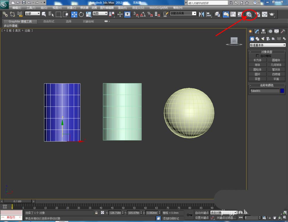 1、打開3Dmax2012軟件,點擊【創建】-【幾何體】-【標準基本體】,點擊【管狀體】,繪制一個管狀模型;點擊【圓柱體】,繪制一個圓柱體模型;點擊【球體】,繪制一個球體模型;