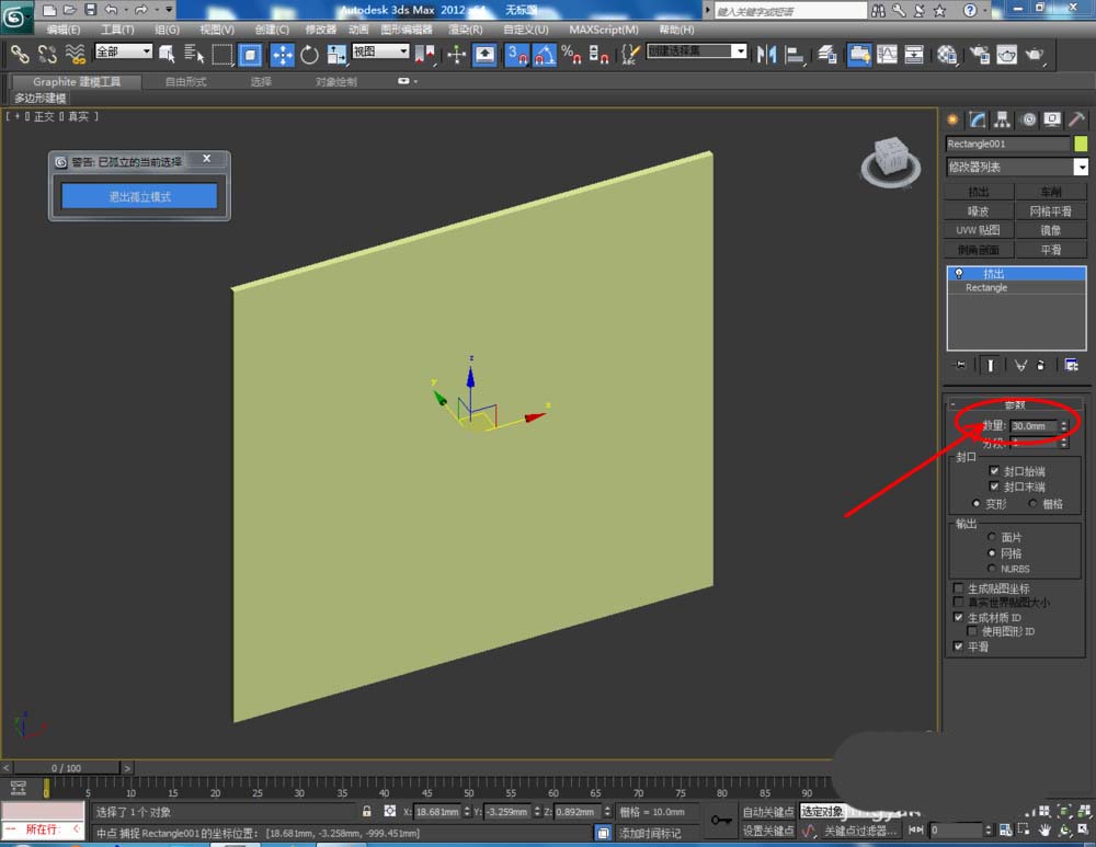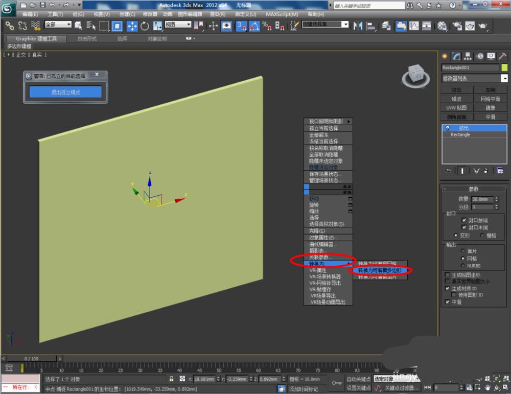 2、選中圖案,點擊【修改】-【擠出】,將擠出數量設置為:30mm。選中模型,點擊鼠標右鍵-【轉換為】-【轉換為可編輯多邊形】。完成后點擊【對象顏色】將模型的對象顏色設置為:黑色;