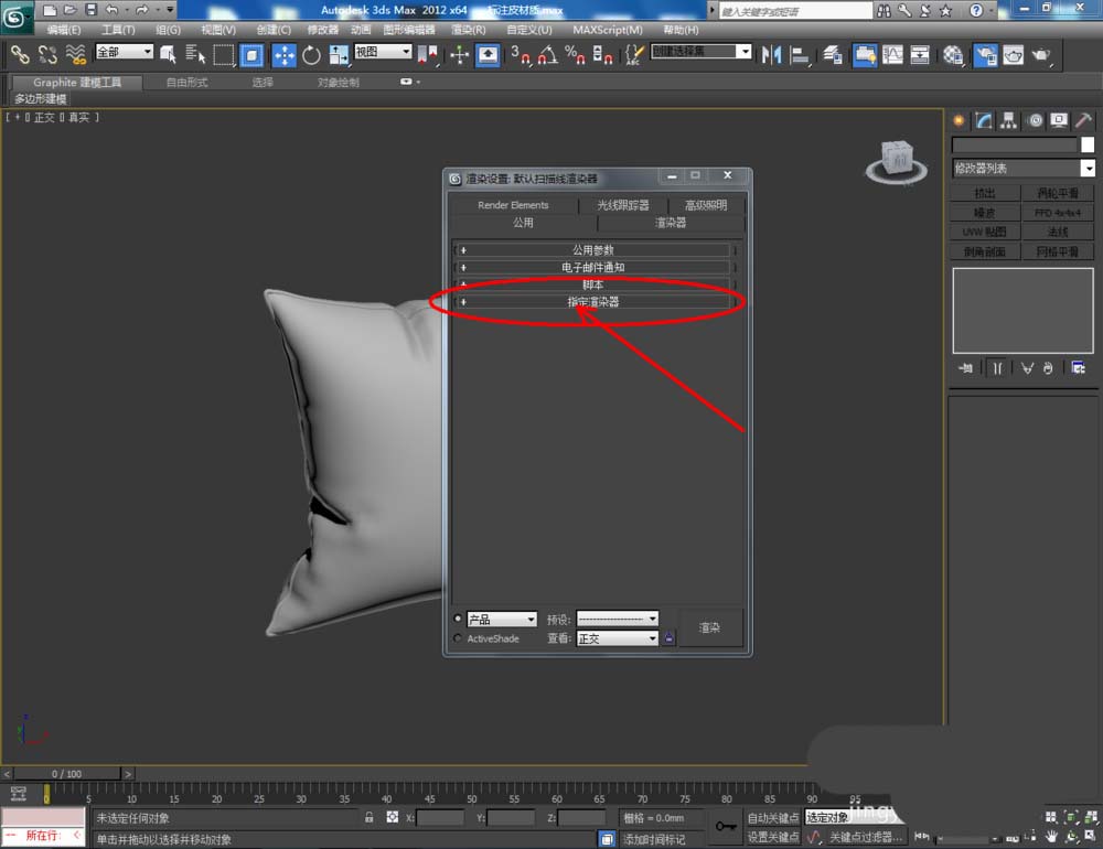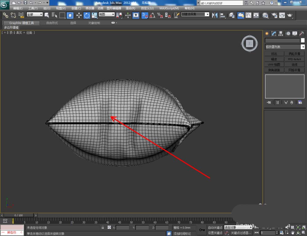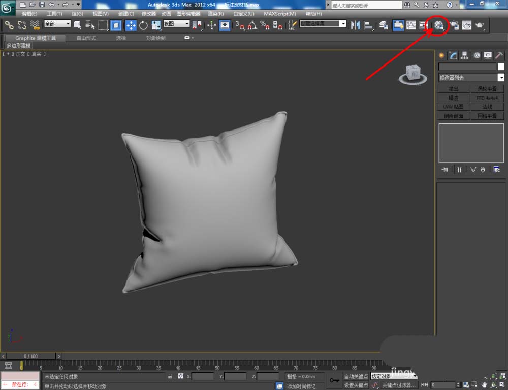 1、打開3Dmax2012軟件,將做好的抱枕模型文件拉到作圖區(qū)域,將抱枕模型合并進來(如圖所示);