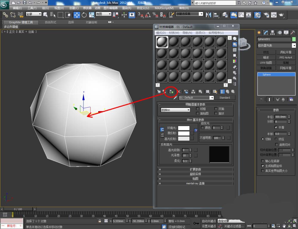 1、打開(kāi)3Dmax2012軟件,點(diǎn)擊【創(chuàng)建】-【幾何體】-【球體】,在作圖區(qū)域繪制一個(gè)球體模型,并按圖示設(shè)置好球體模型的各個(gè)參數(shù);