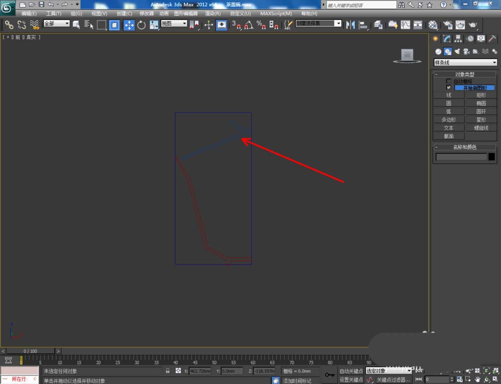 1、打開3Dmax2012軟件,點擊【創建】-【圖形】-【矩形】,在作圖區域繪制一個矩形參考線圖案并按圖示設置好矩形的各個參數;