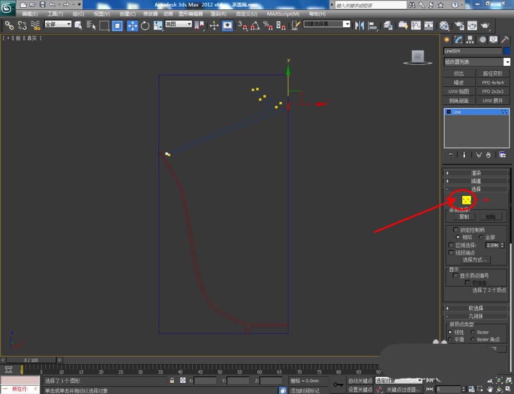 2、點擊【創建】-【圖形】-【線】,在作圖區域繪制兩個多變圖案。點擊右邊工作區中的【頂點】圖標,按圖示對圖案1上的點進行平滑圓化處理,完成茶碗剖面圖案的制作(如圖所示);