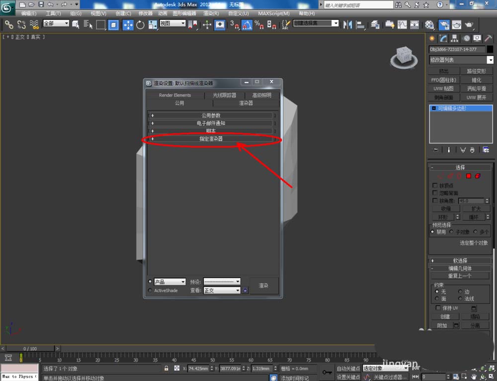 2、點擊【渲染】-【渲染設置】,彈出渲染設置框。點擊【指定渲染器】-產(chǎn)品級【…】-【Vary-Adv2.10.01】調(diào)出vary渲染器(如圖所示);
