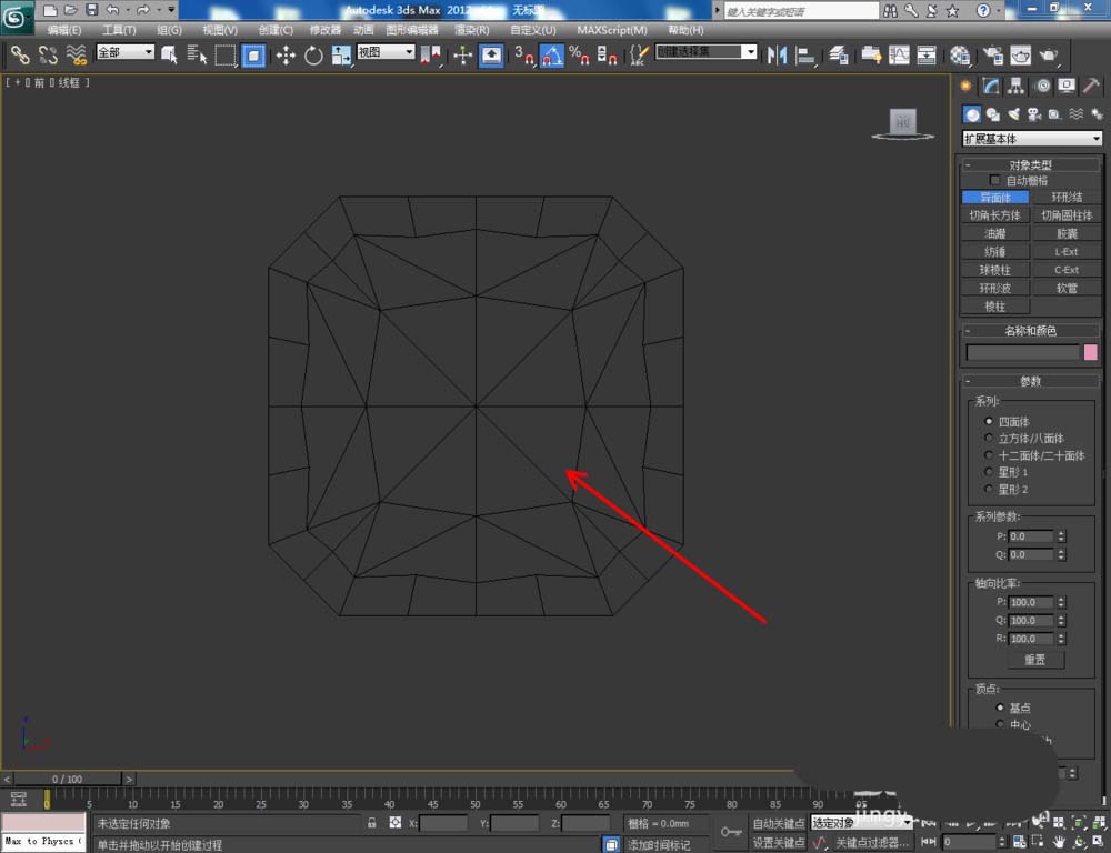 1、打開3Dmax2012軟件,點擊【創(chuàng)建】-【幾何體】-【擴展基本體】-【異面體】,使用異面體工具制作出一個寶石模型;