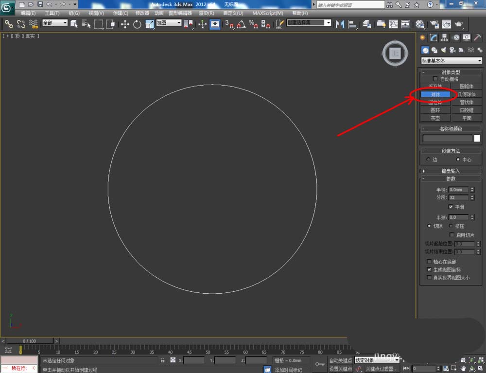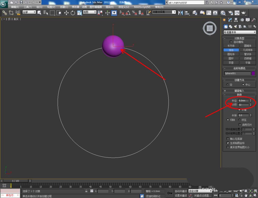 2、點(diǎn)擊【創(chuàng)建】-【幾何體】-【球體】,畫好第一顆珠子,球半徑設(shè)為:8mm。選中珠子,點(diǎn)擊【對(duì)象顏色】將珠子的對(duì)象顏色設(shè)置為:白色;