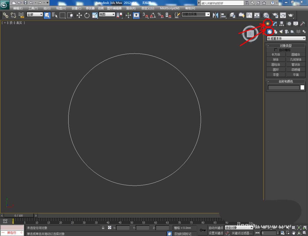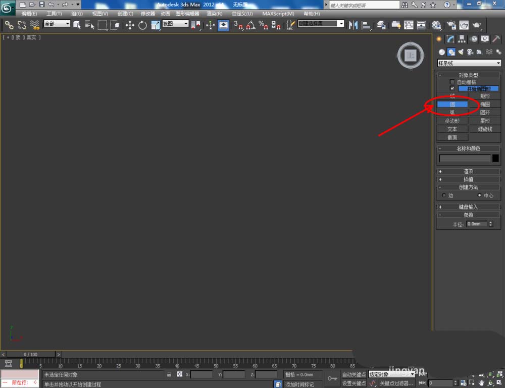 1、打開3Dmax2012軟件,點(diǎn)擊【創(chuàng)建】-【圖形】-【圓】,繪制出一個(gè)圓形圖案,半徑設(shè)為:40mm作為手串的系線。點(diǎn)擊【對(duì)象顏色】將圖案的對(duì)象顏色設(shè)置為:白色;