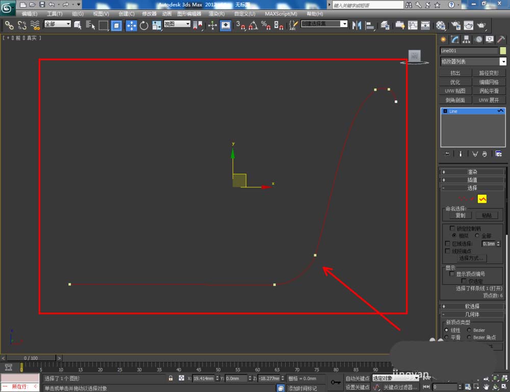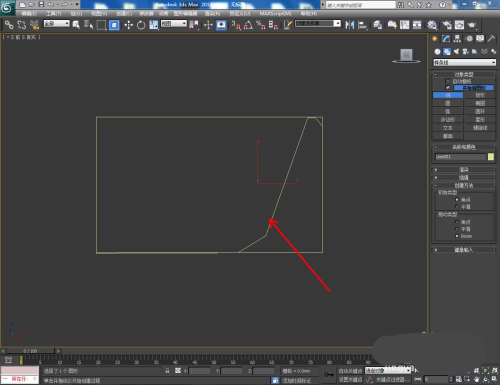 2、點擊【創(chuàng)建】-【圖形】-【線】,按圖示以矩形圖案為參考,繪制一個多邊圖案。點擊右邊工作區(qū)中的【頂點】圖標,選中圖示圖案上的點,將選點進行圓化平滑處理。完成后刪除矩形參考圖案;