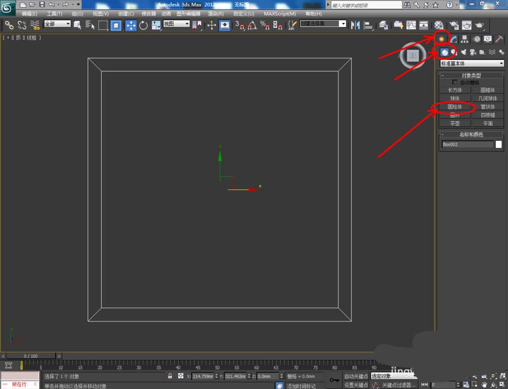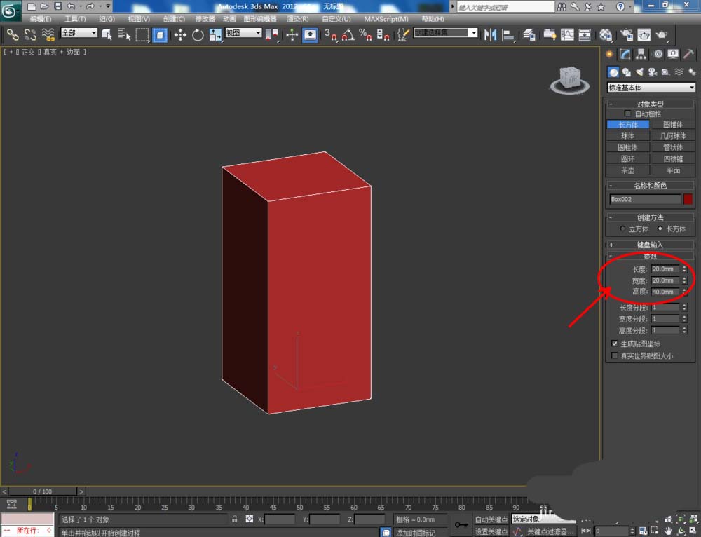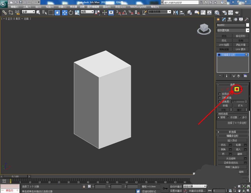 1、打開3Dmax2012軟件,點擊【創建】-【幾何體】-【長方體】,在作圖區域繪制一個長方體模型并按圖示設置好長方體的各個參數。選中模型,點擊【對象顏色】將模型的對象顏色設置為:白色。完成后,點擊鼠標右鍵-【轉化為】-【轉換為可編輯多邊形】;