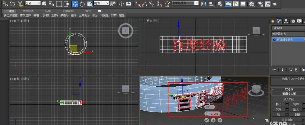 8、點(diǎn)擊下面的擠出,可以看到,在管狀體上面擠出了文字
