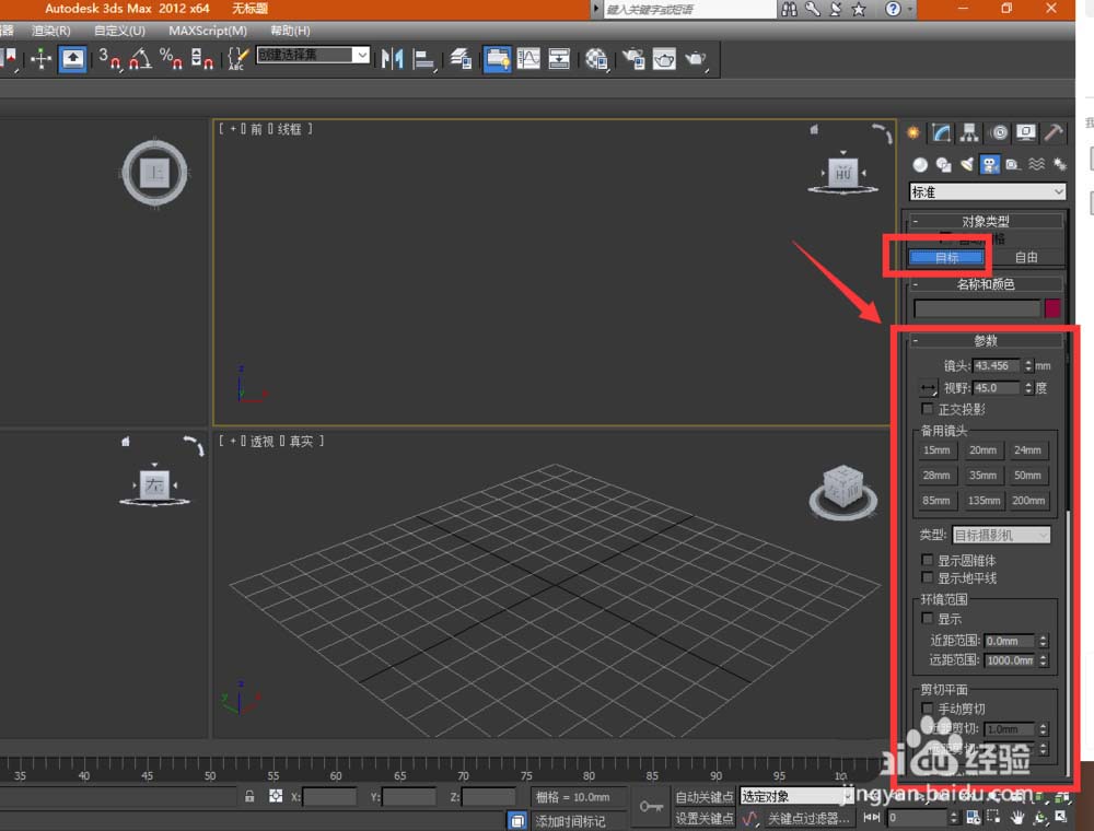 3、步驟2后,選擇下圖所示的【目標(biāo)】攝像機(jī),在彈出的參數(shù)面板中設(shè)置參數(shù)。