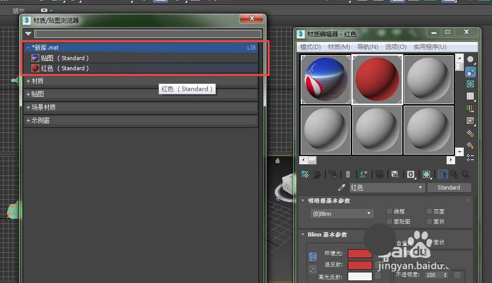 2、選中材質示例窗,點擊放入庫,彈出對話框,選擇是即可。