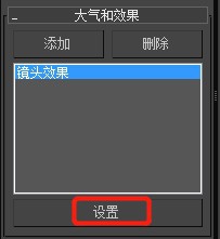 2、在泛光燈的修改器列表里找到“大氣與效果”,點擊“添加”,彈出對話框選擇“鏡頭效果”點擊確定,這樣,返回修改器的“大氣與效果”就有了“鏡頭效果”,選擇他然后點擊設置;