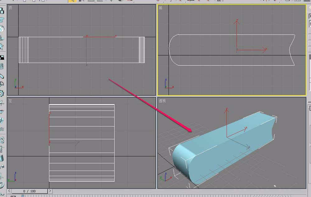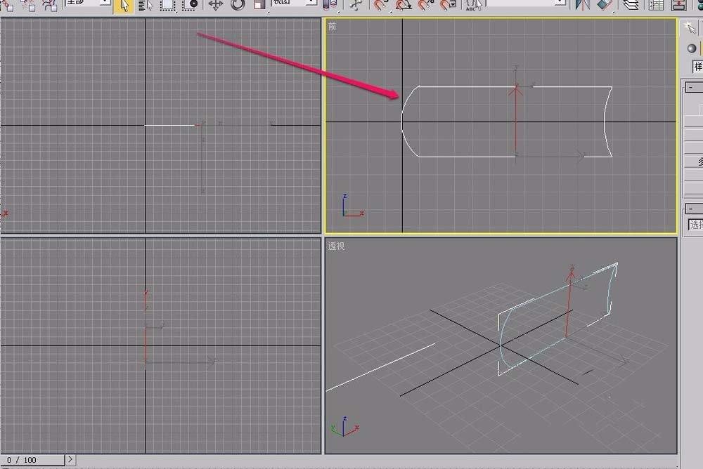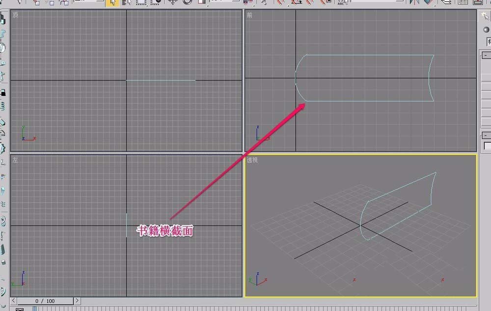 3、在“前”視圖中繪制一個(gè)書籍的橫截面。