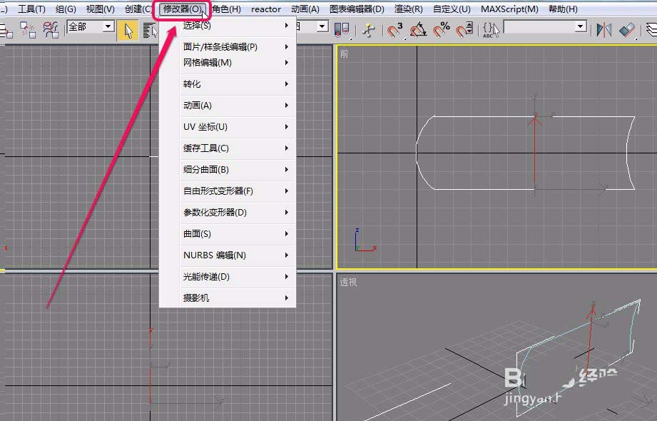 6、選擇“網(wǎng)格編輯”項(xiàng)中的“擠出”命令。