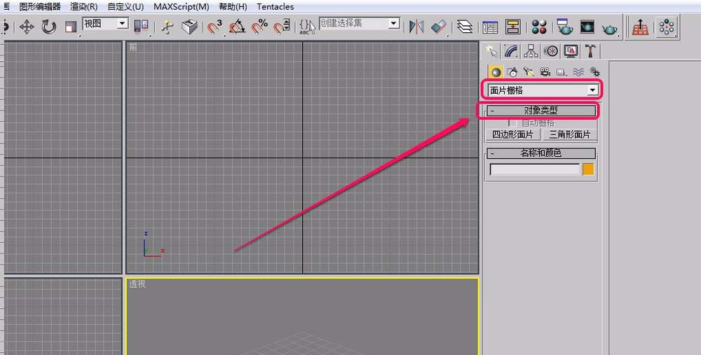 3、選擇下拉菜單中的“面片柵格”選項,打開“對象類型”卷展欄。