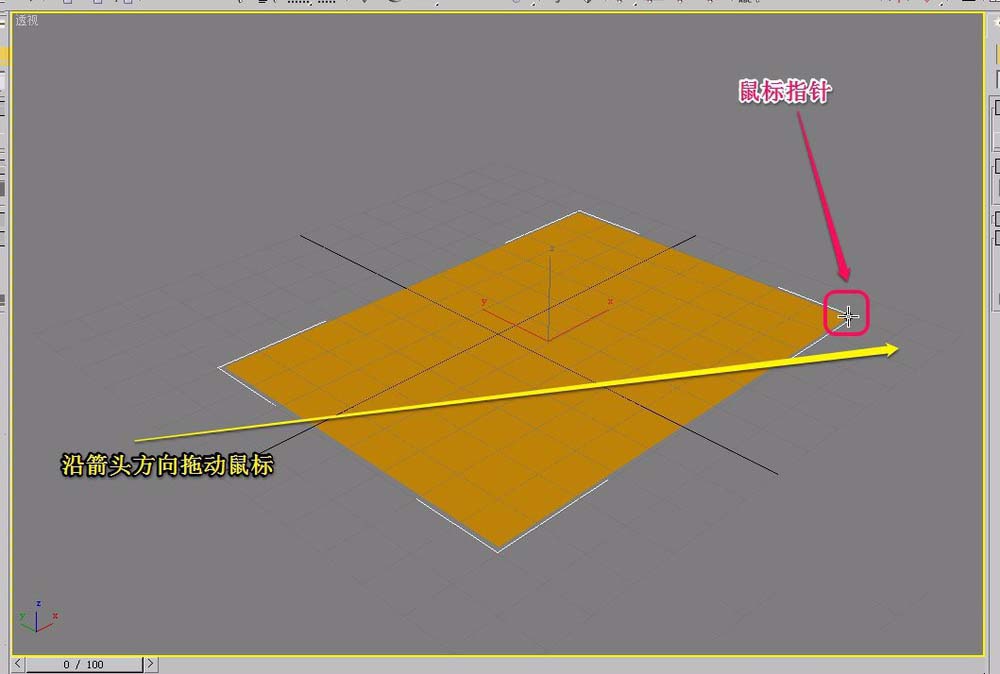 5、沿著黃色箭頭方向,按住鼠標鍵拖動創建出三角形面片。